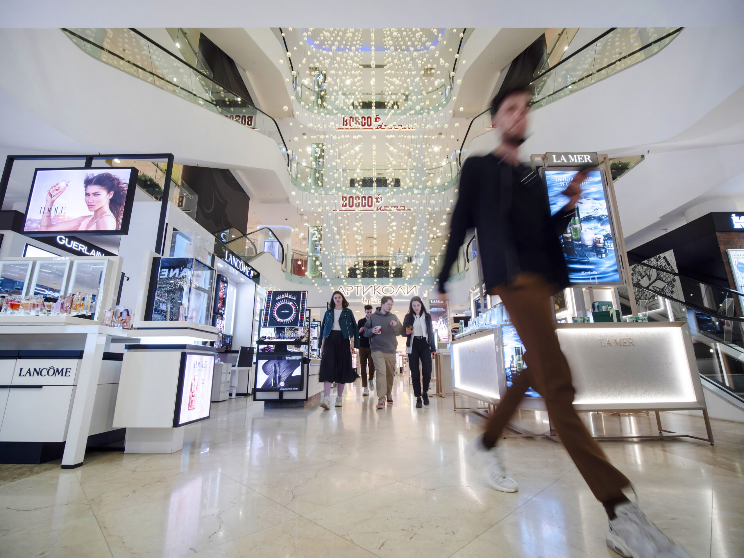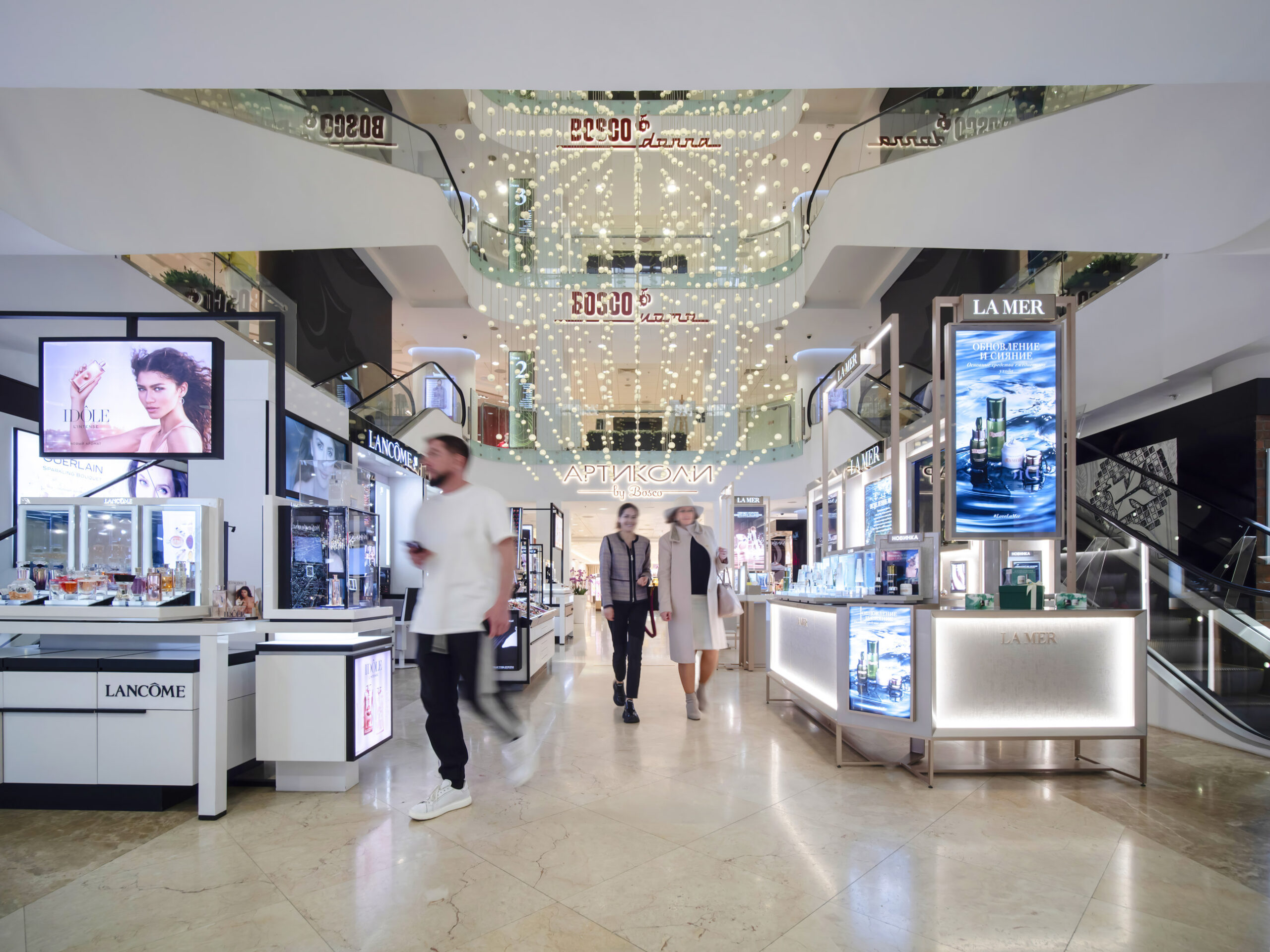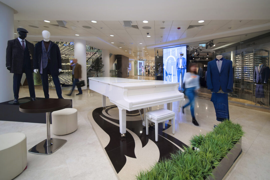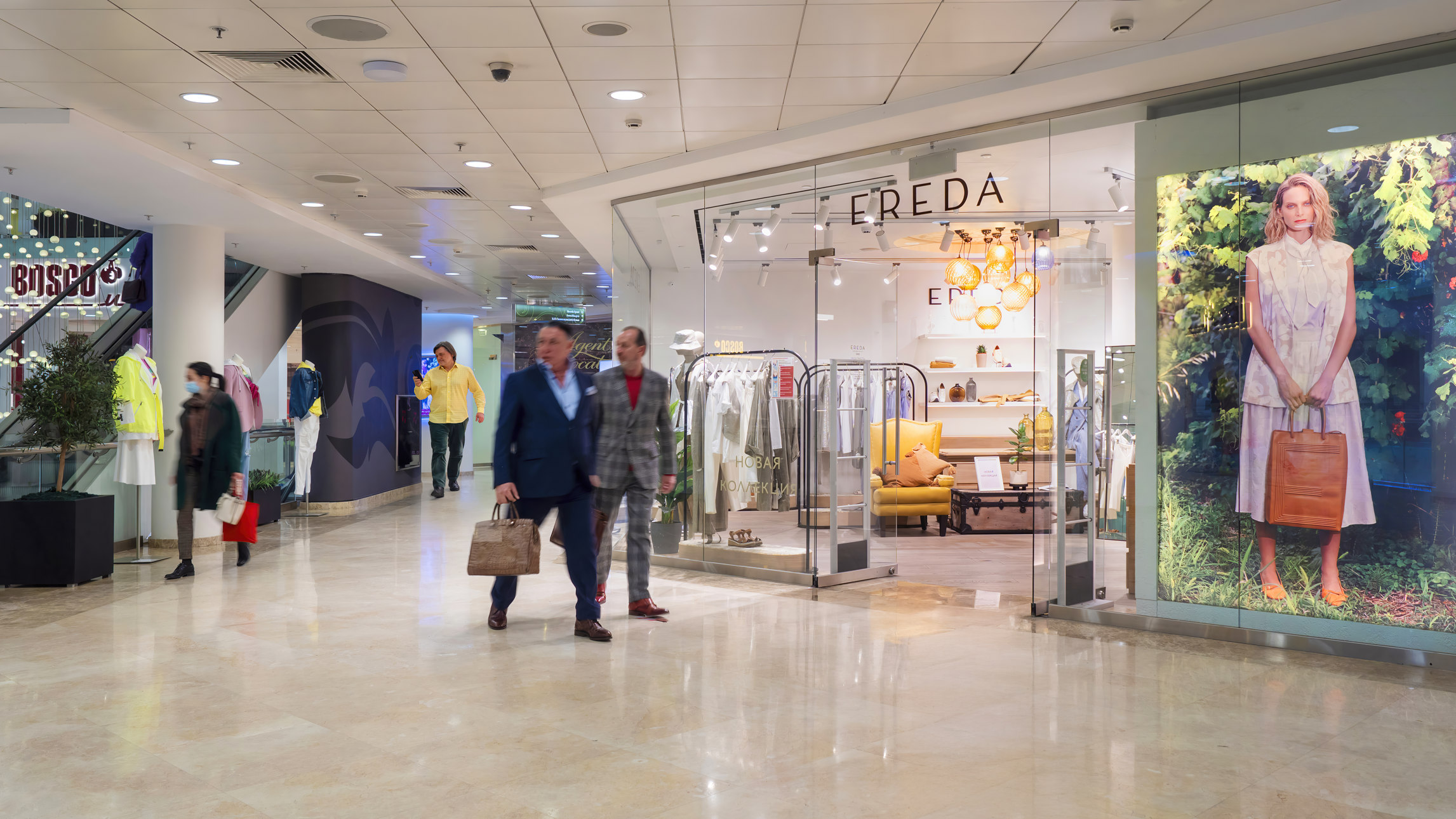 • Всегда интересно смотрится контраст застывших витрин и двигающихся посетителей. Гости совершают покупки и являются движущей силой торгового центра. Витрины, коллекции, дизайн – это про бизнес, а покупатели — это про движение к достижению желаний.