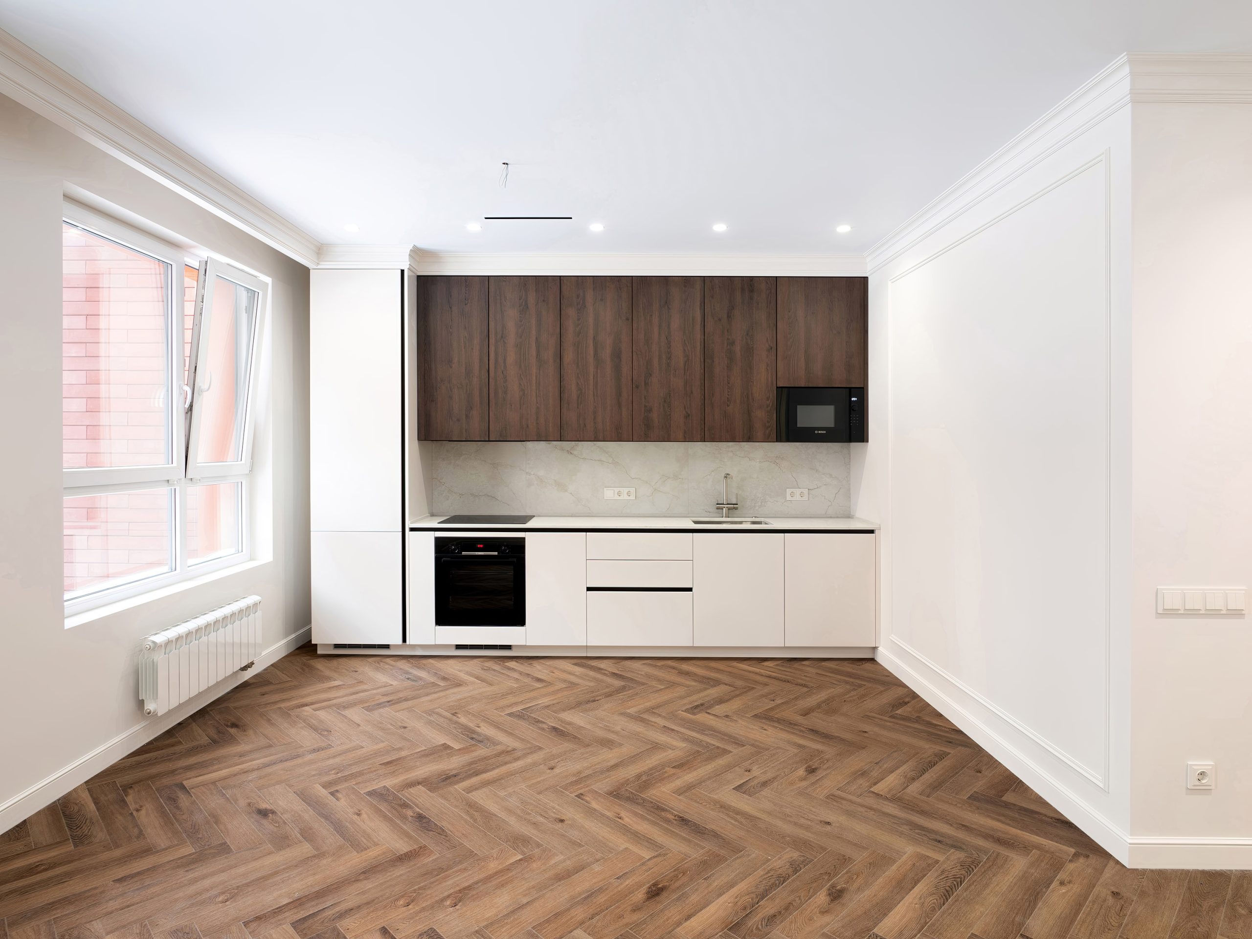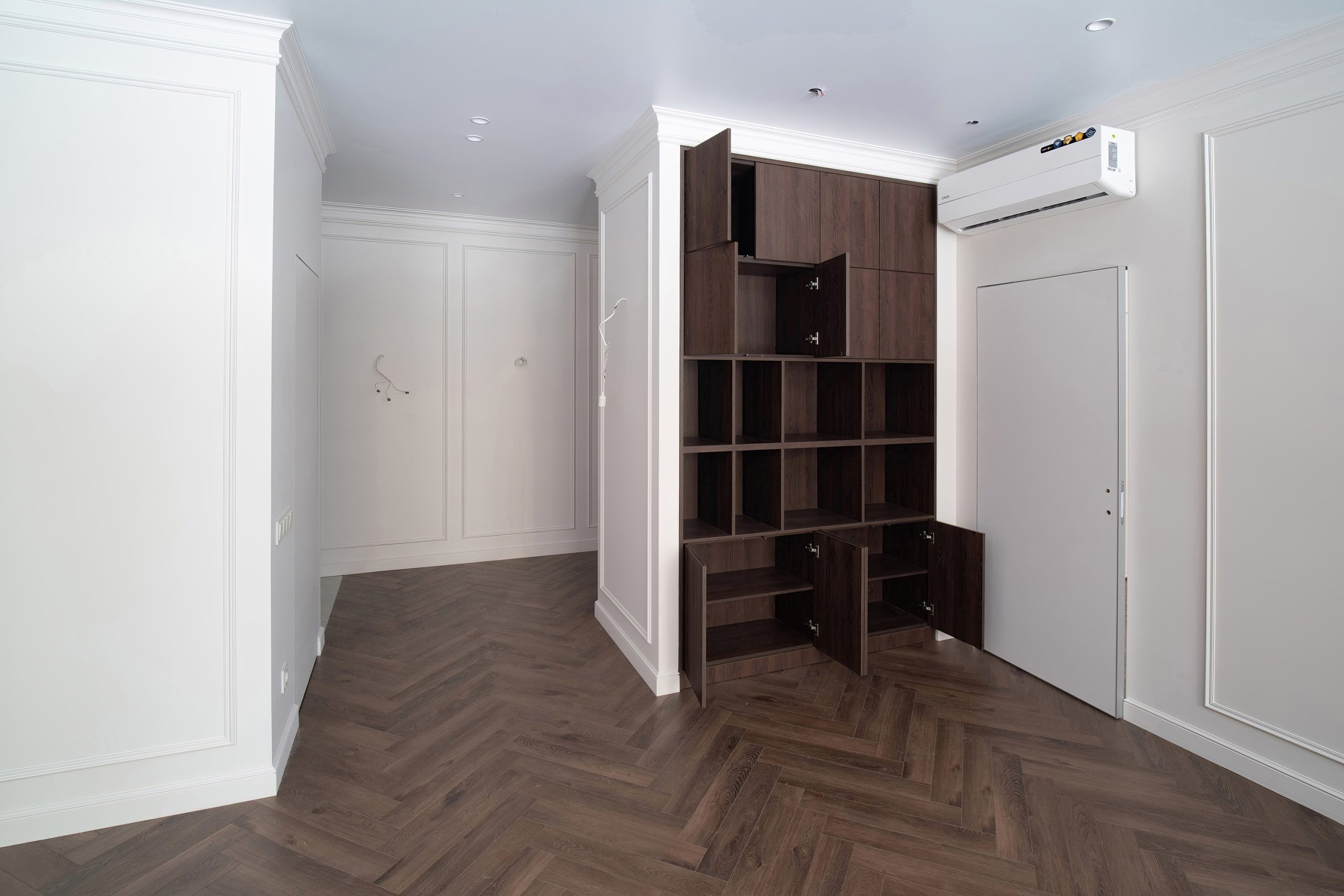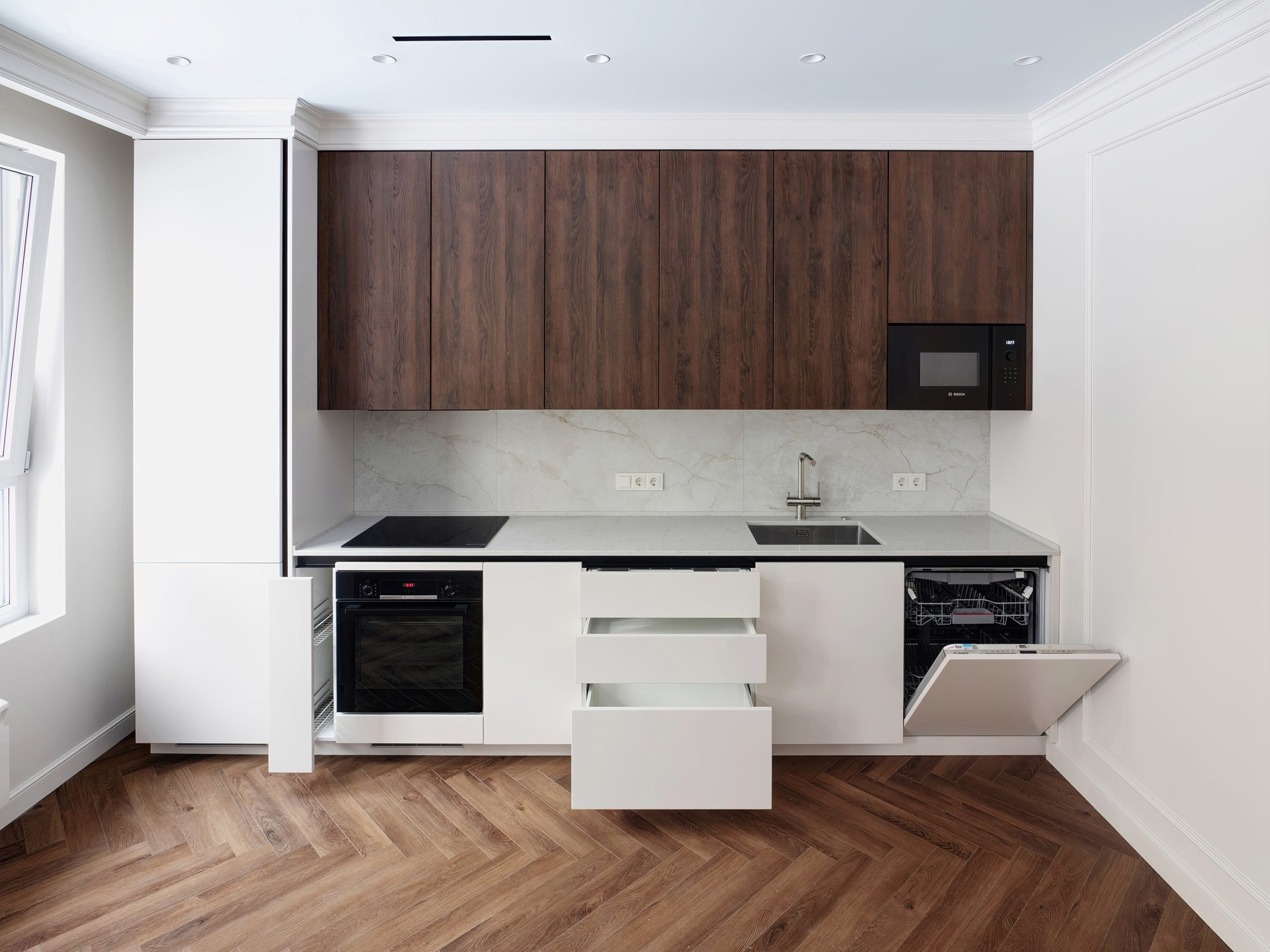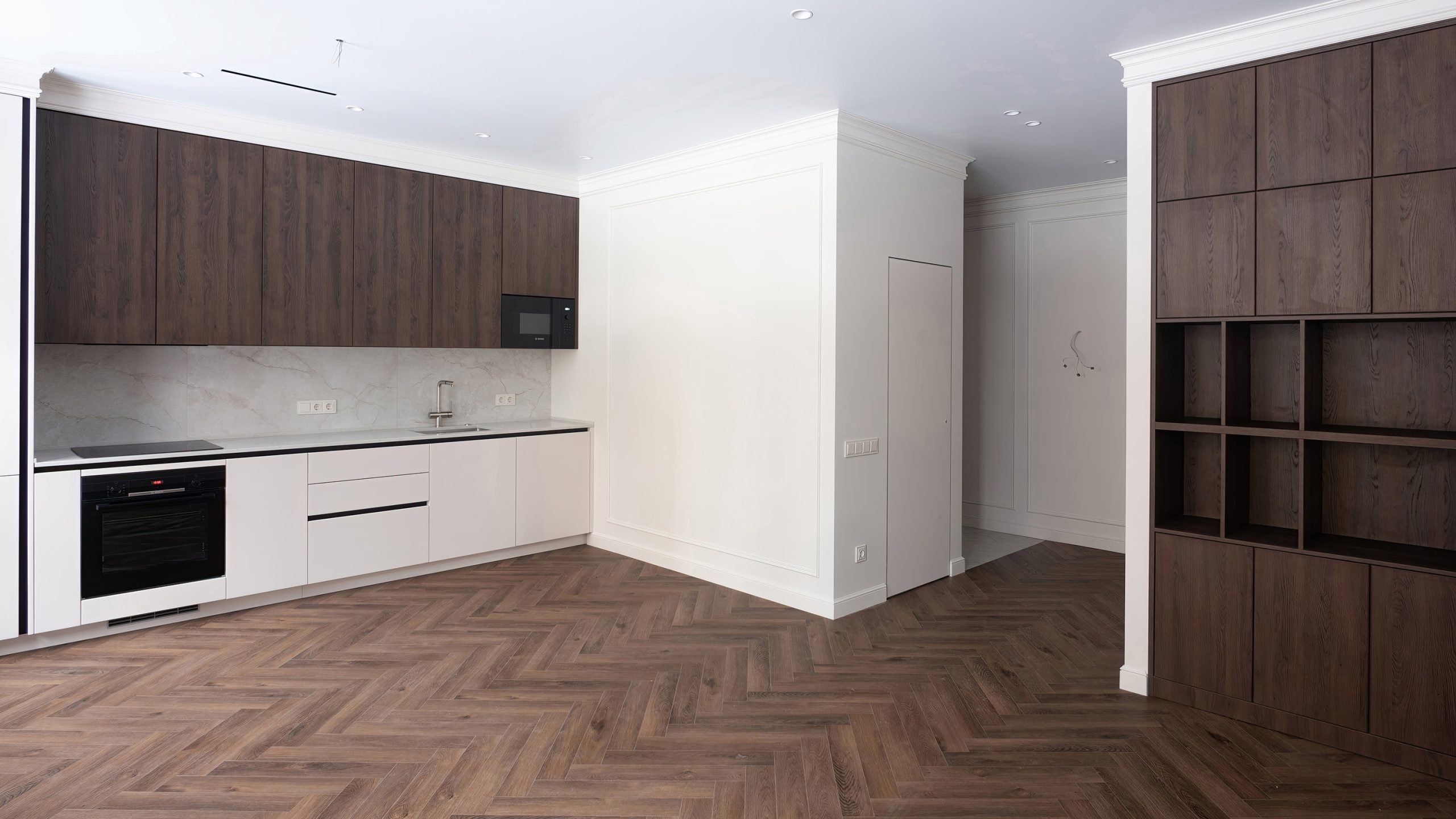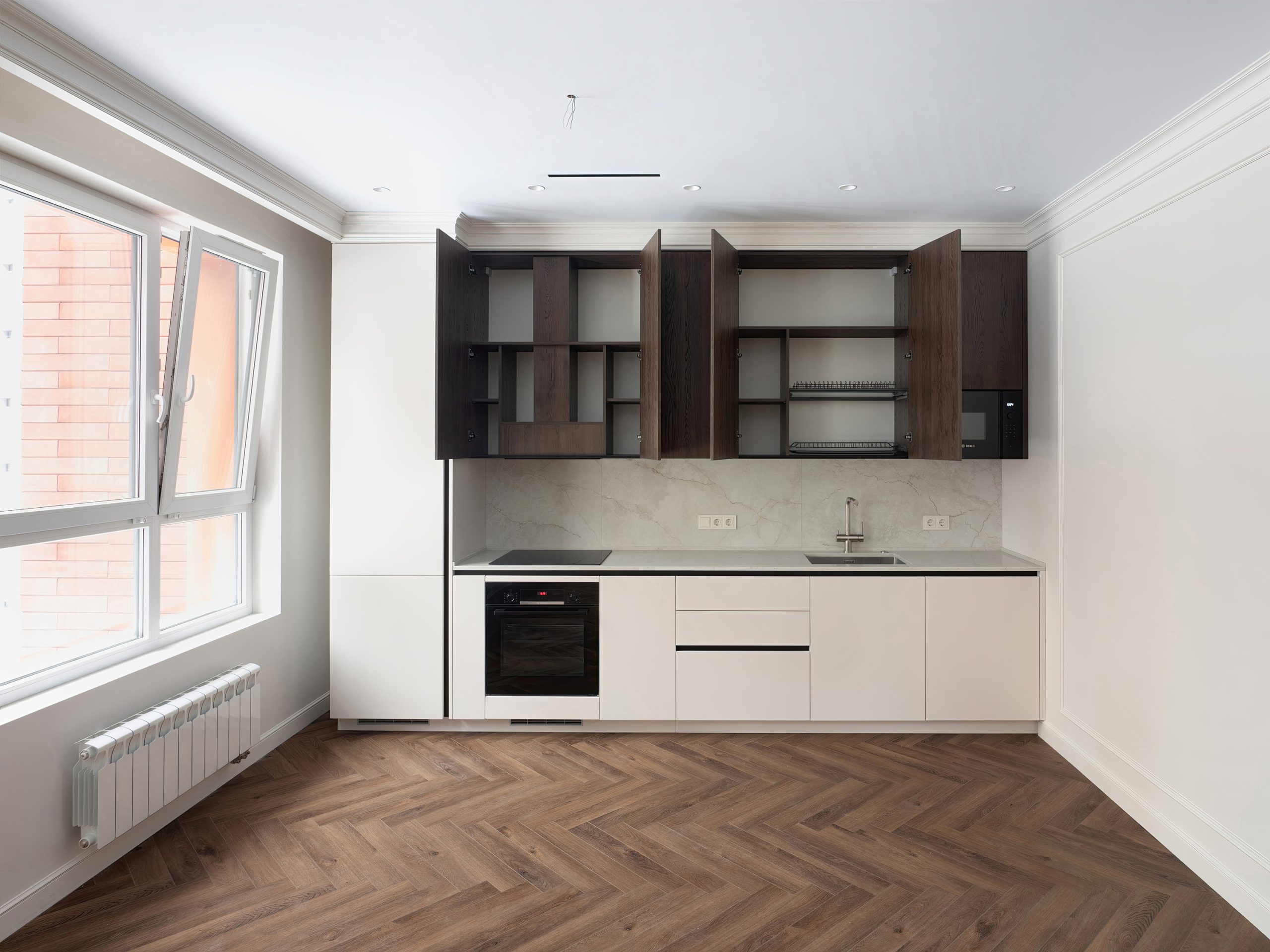 На объекте была встроенная мебель в виде кухни, шкафов, элементов санузла. Я всегда обращаю внимание на стыки и подоконники. Подоконник, кстати, отличный индикатор качества работы.