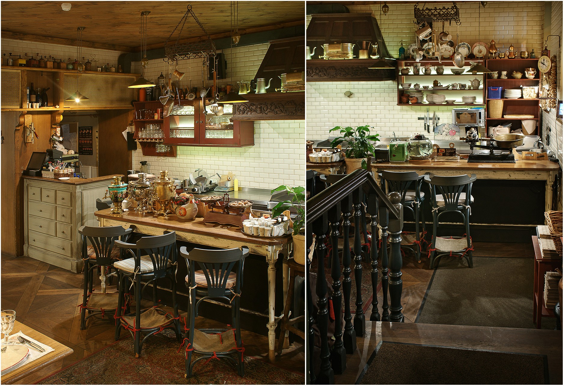 ⇛ ② Очевидно, что интерьер второго ресторана буквально переполнен декоративными элементами. Однако, это выглядит вполне гармонично.