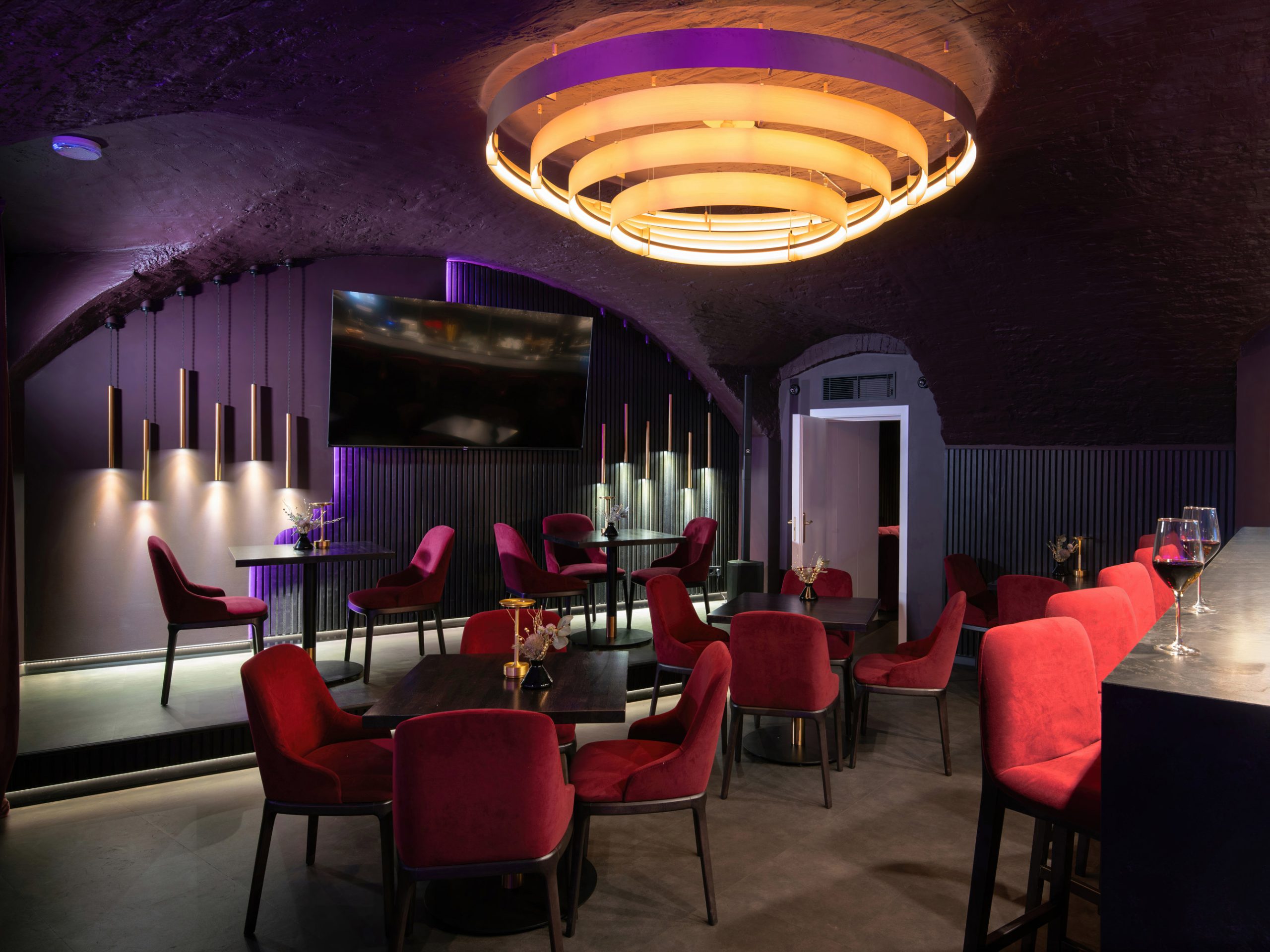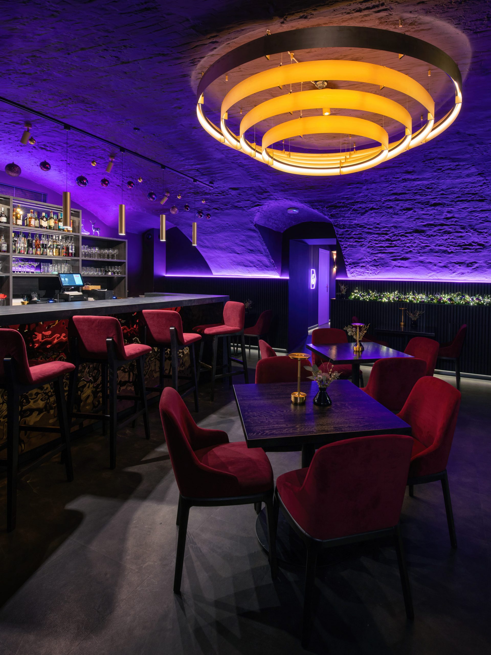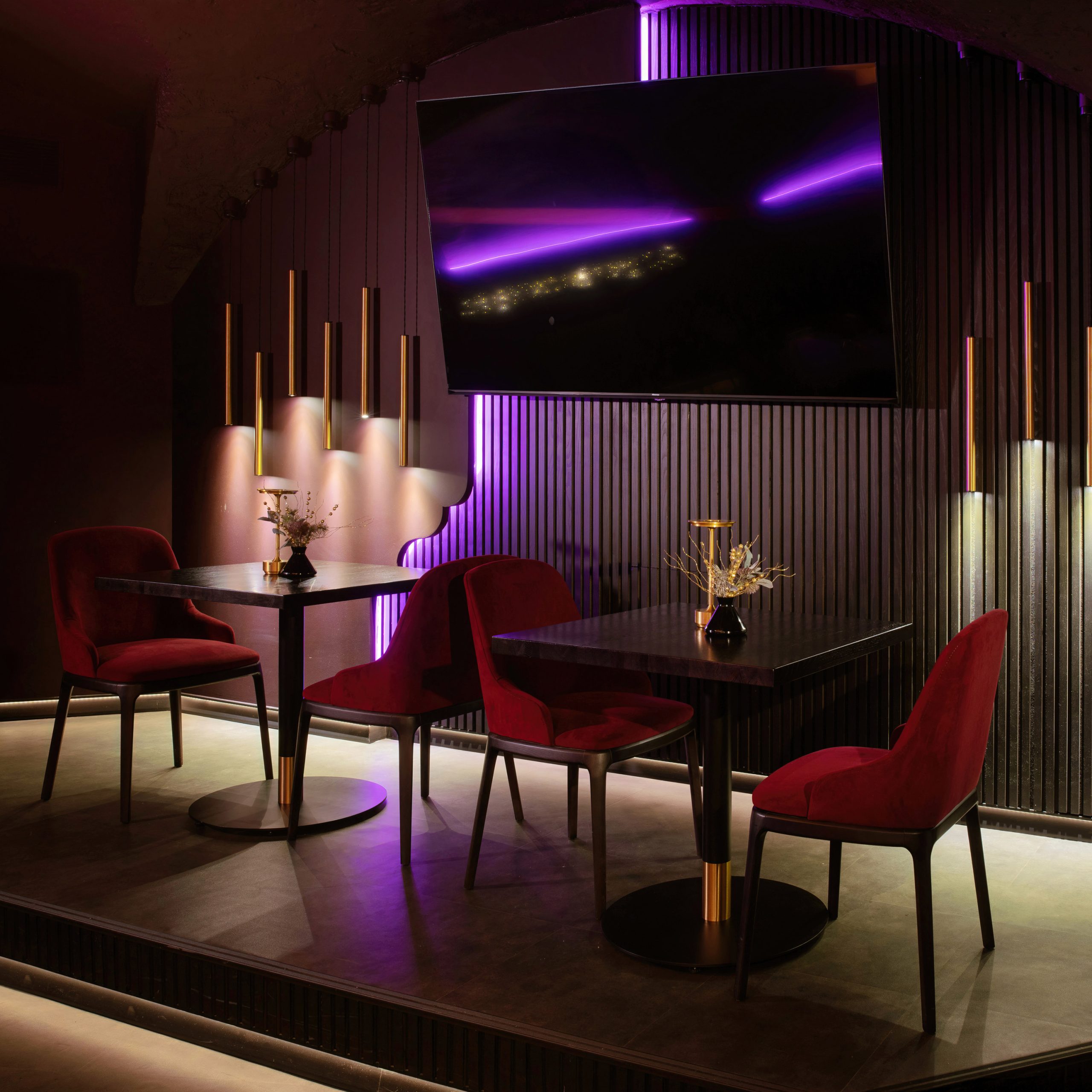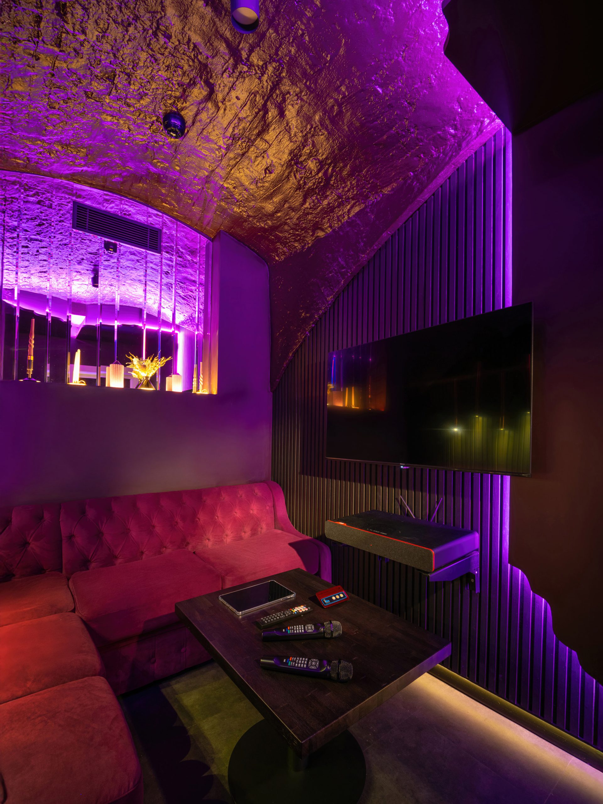 Третий мир: тесные каморки. Три на два метра. Вряд ли тут жили. Окон нет. Тут были либо кладовые, либо камеры. Теперь — диван, столик, телевизор. Два света: приглушённый — для настроения, и практичный — чтобы упавший пульт искать. Я использовал источник с узким тубусом. Создавал акцент. Точечно.