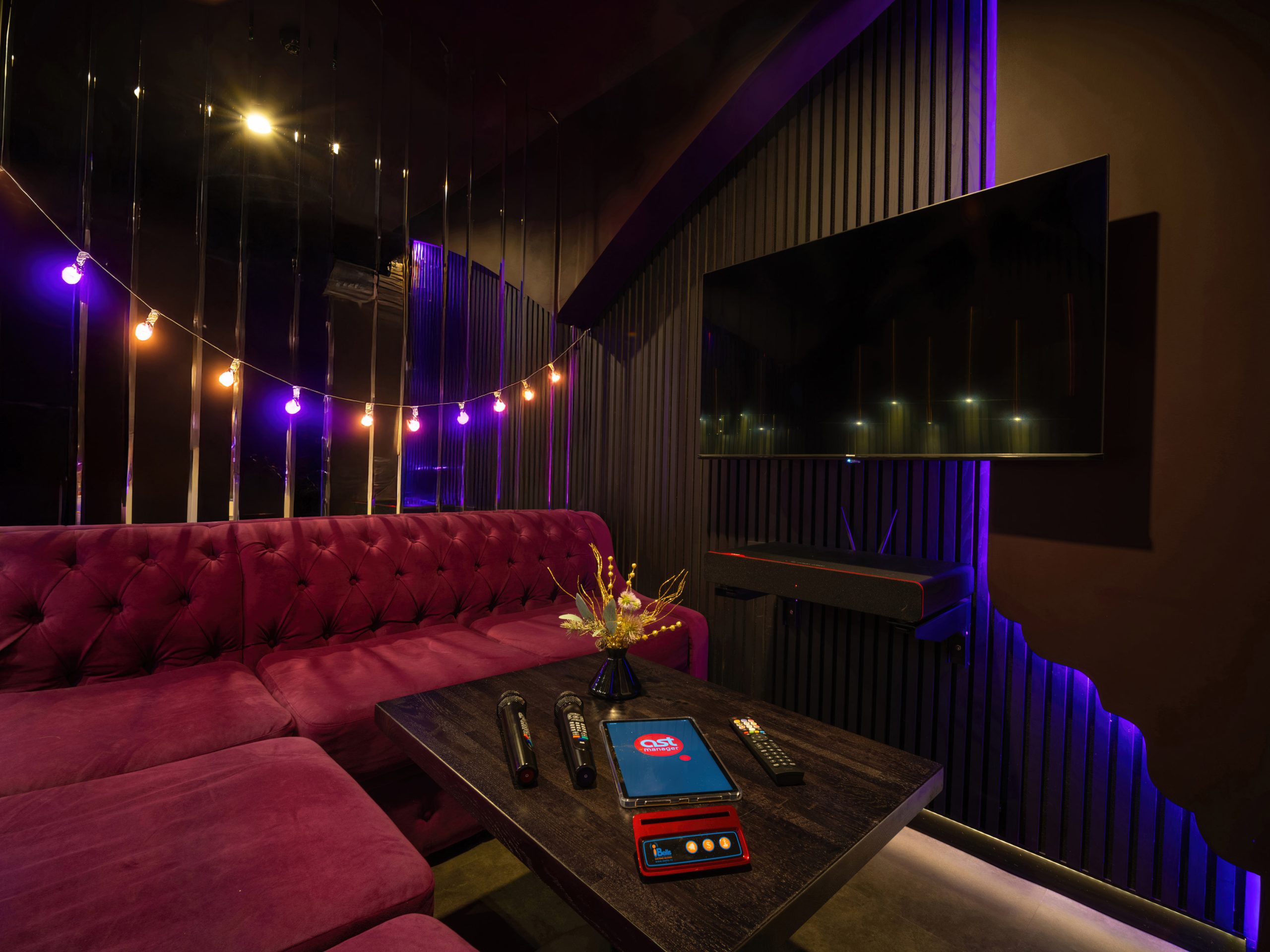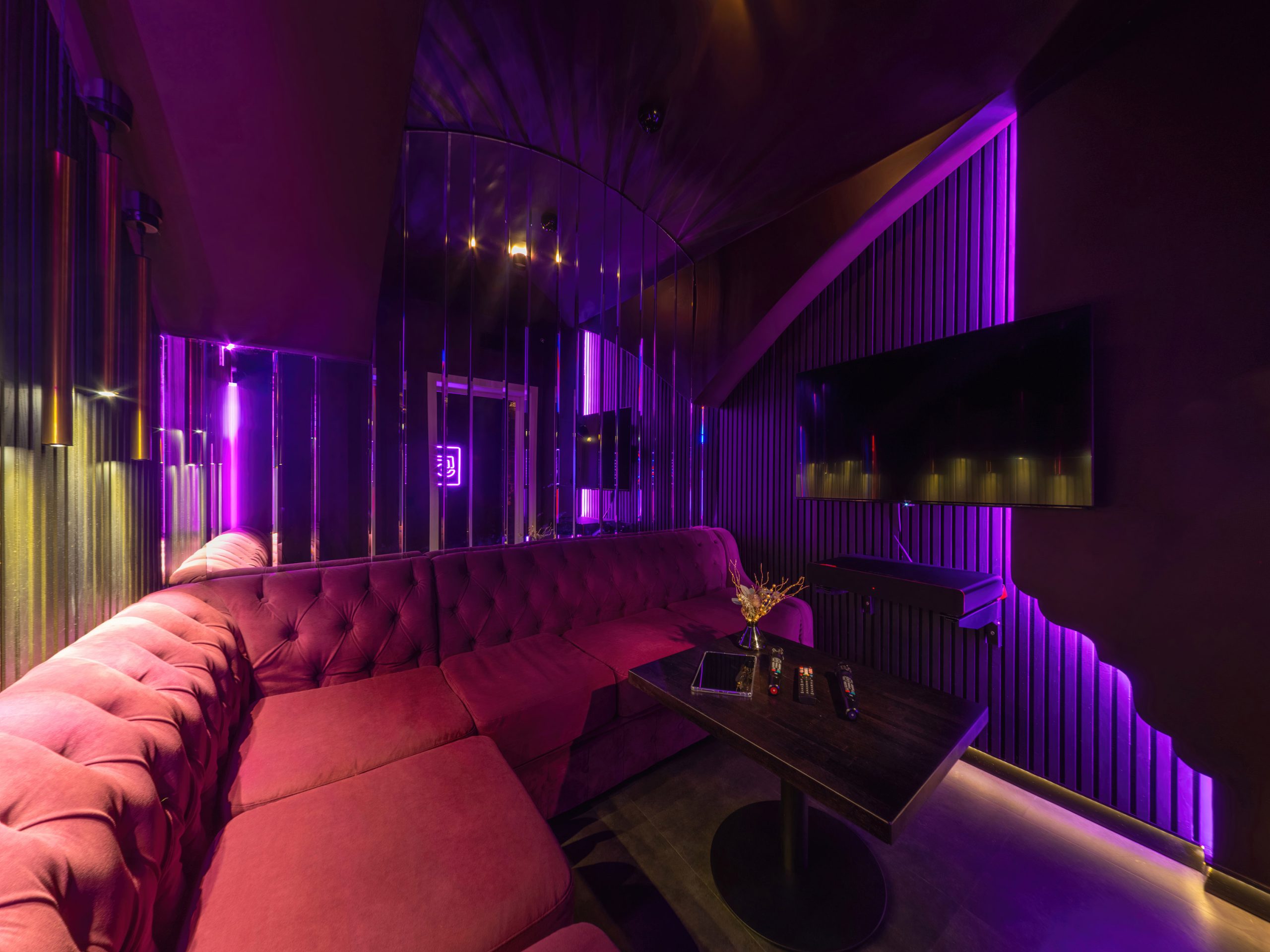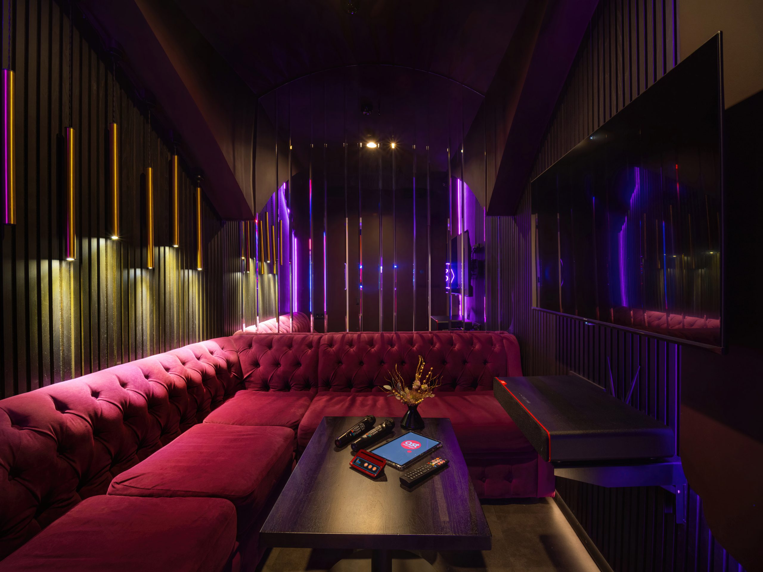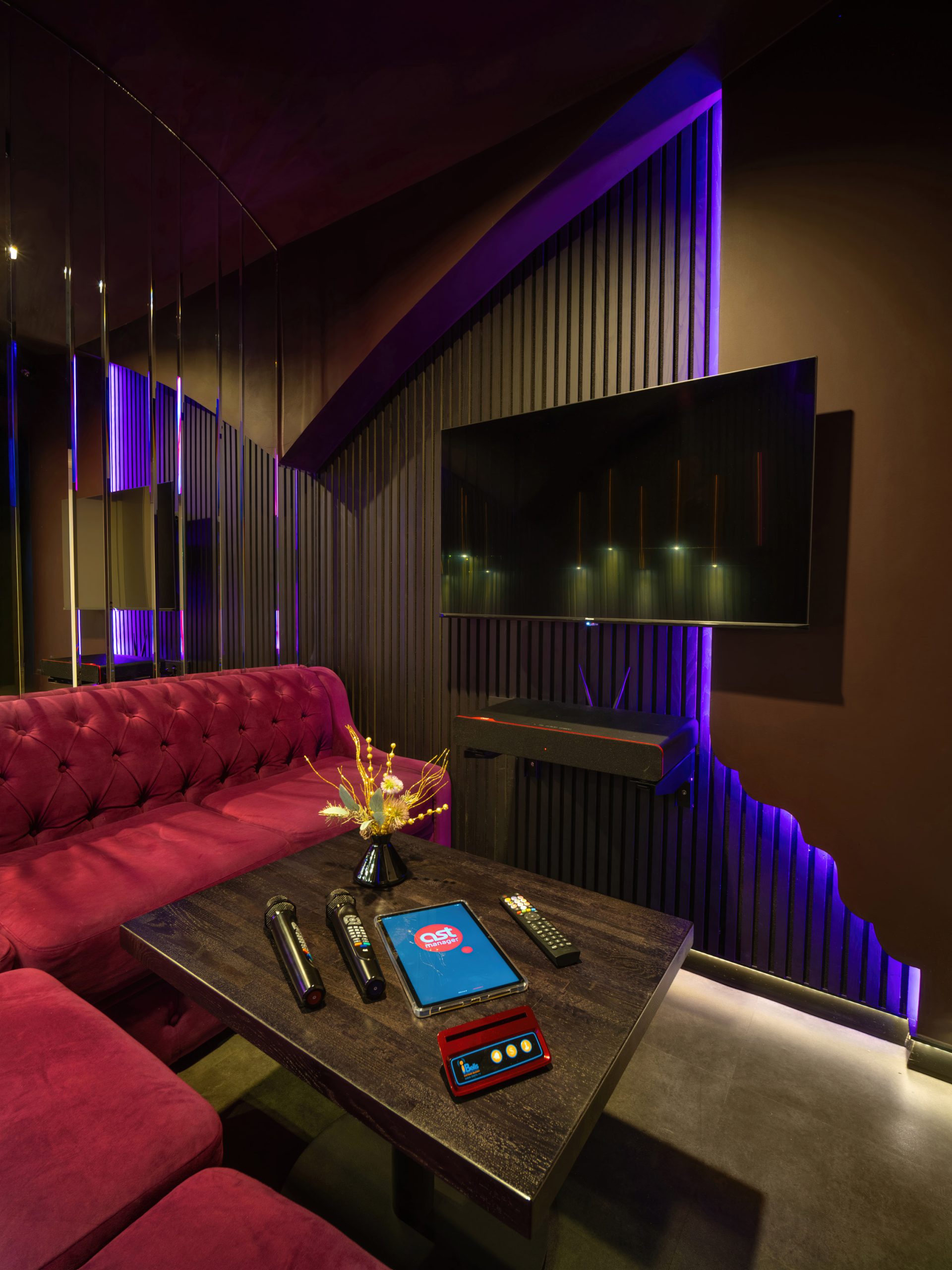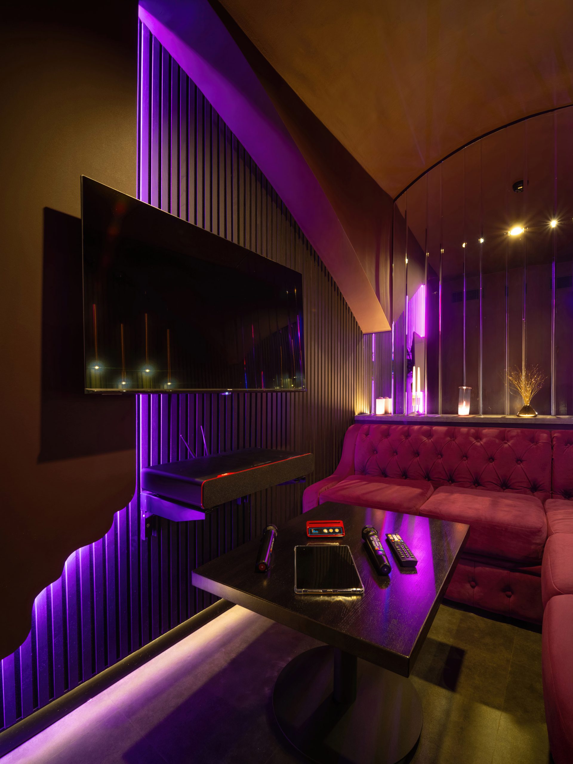 Второй мир: две комнаты и лишняя дверь. Для игр и для караоке. Проблема одна — белая дверь между ними. На фото она кричала. Я спросил: «Уберём?». Ответ обрадовал: «Фотографии должны атмосферу передавать, а не чертёж». В обработке стер дверь, но белый проем оставил.