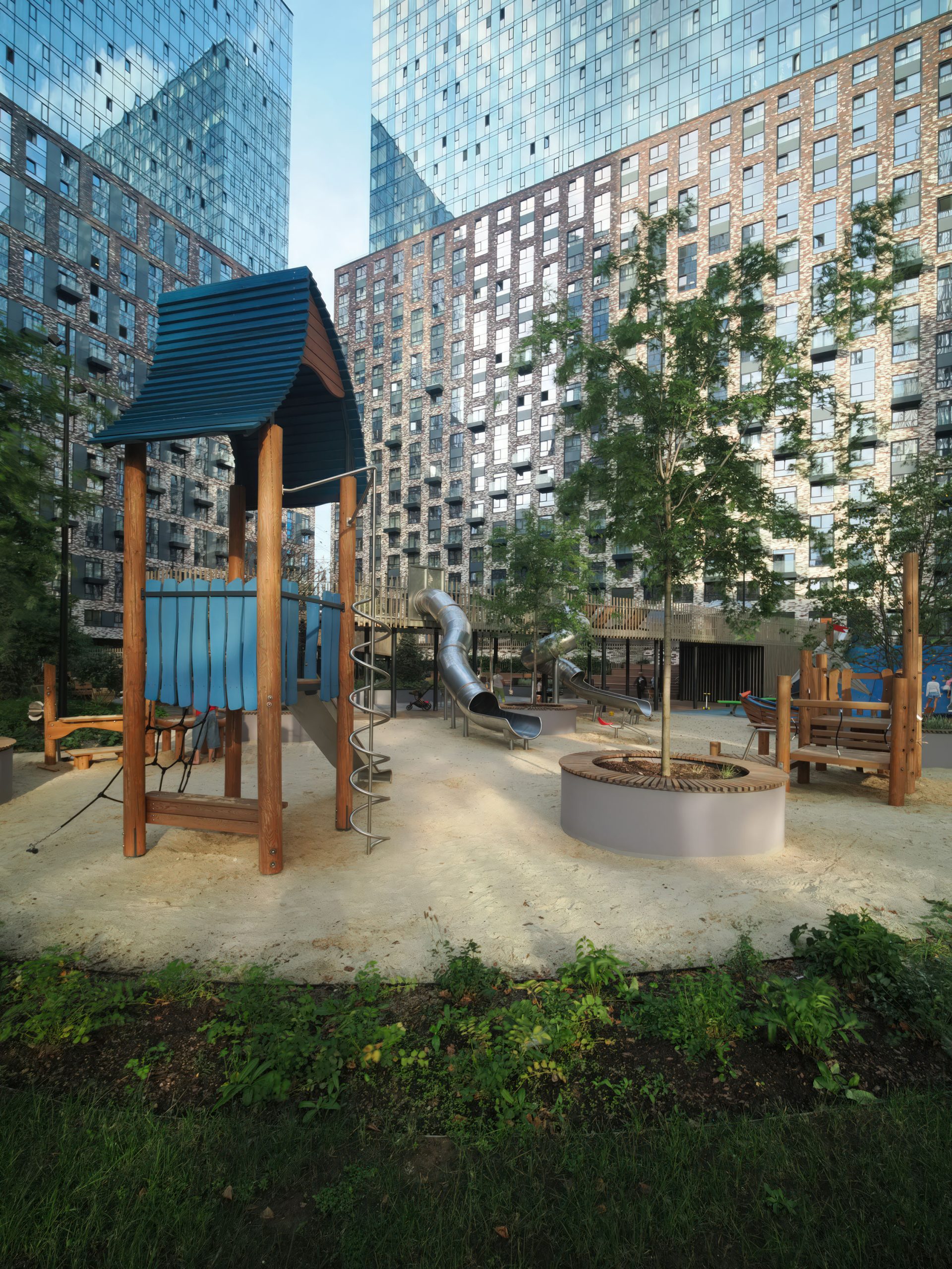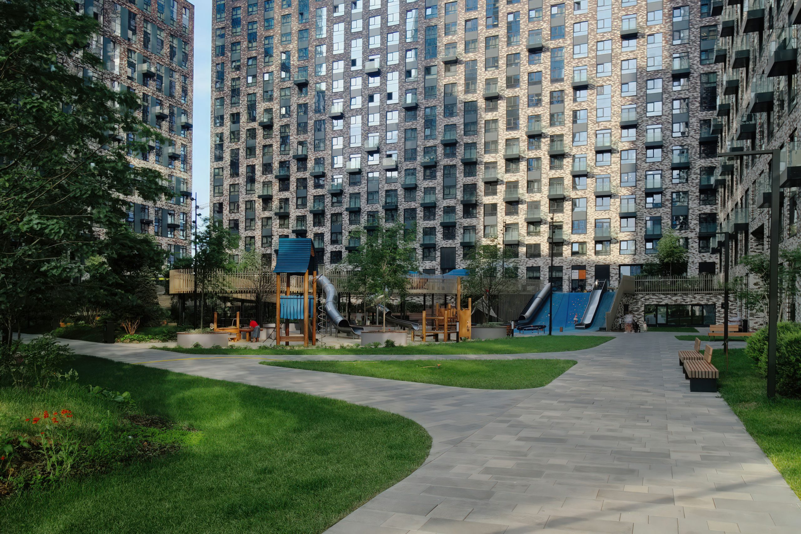 Начав презентацию видом из окна, я продолжаю рассказ детскими площадками. Зонами отдыха. Эта часть редко считается полноценным обзором ЖК. Но интерьер можно изменить. Двор останется.
