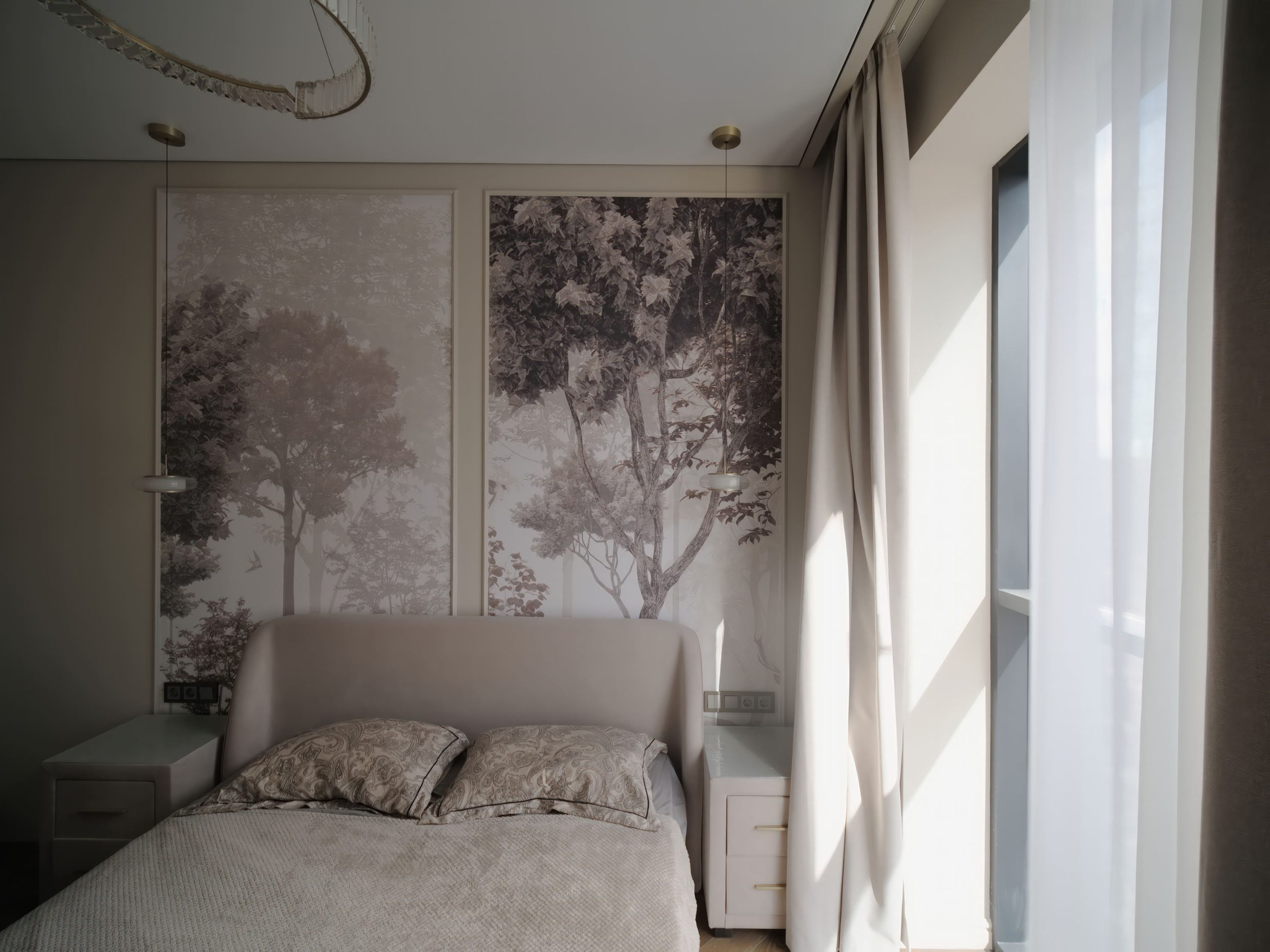 Две фотографии демонстрируют красоту освещения от большого окна. Комната лишена стенного шкафа. Лишена телевизора. Я акцентировал внимание на красоте света. На уюте. Телевизор появился при обработке. Фрагмент комнаты для привлечения просмотров. Спальня с закрытыми шторами. Телевизор интегрирован. Комната с дневным и электрическим светом. Демонстрация подсветки.
