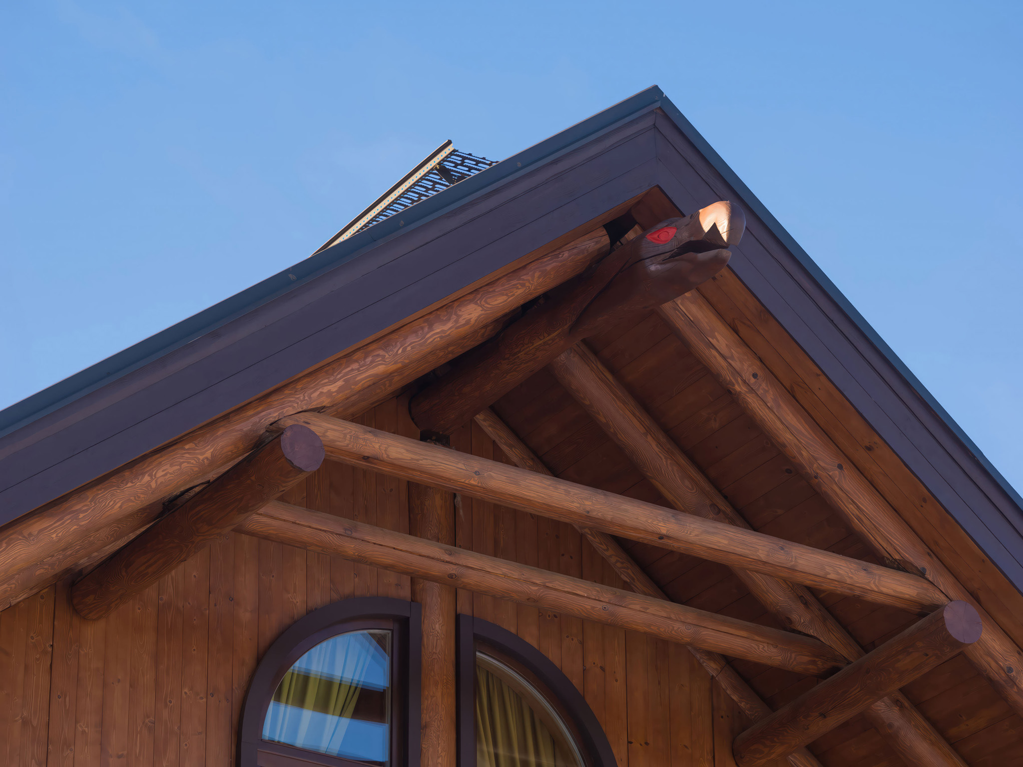 Архитектура дома базируется на традициях, переосмысленных современно. Уникальный сруб служит доказательством этого подхода. Выразительная фактура дерева формирует его образ: мощные бревна с ярко проявленной структурой, контрастами и благородным оттенком. Эта текстура становится главным украшением, не требующим излишнего декора. Истра. Услуги фотографа Дом представляет собой уникальный сруб, где каждый венец рассказывает свою историю. Стоит обратить внимание на сложную фактуру дерева: природные сучки, изгибы годовых колец и мягкую игру светотени на поверхности бревен. Эта ручная работа демонстрирует глубокое понимание материала, превращая стены в живую текстуру, которая меняется в течение дня. Архитектурную ценность дома определяет его фактура. Дерево здесь — главный герой. Грубоватая, честная поверхность бревен, их естественный рельеф и теплый оттенок создают тактильное и визуальное богатство. Взгляд задерживается на деталях, отмечая мастерство рубки и подбор материала, что выделяет этот дом среди типовых построек.